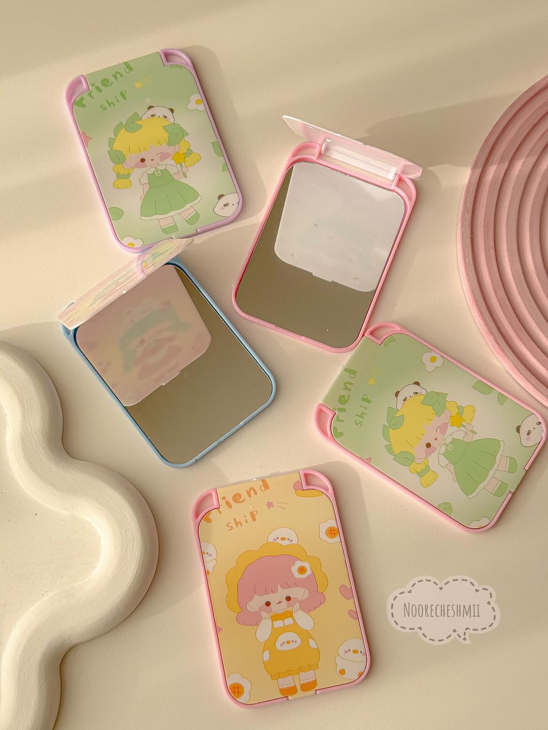 آینه پینترستی با اندازه کوچیک و جمعوجور. راحت توی کیف و حتی جیب جا میشه. کاور ضد خش و خوشدست. 🎀ارسال رندوم🎊